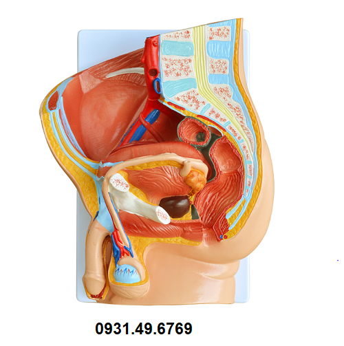 Mô hình khung chậu nam: Một nửa của cơ quan sinh dục nam với bàng quang được hiển thị ở vị trí bình thường trong khung xương chậu.