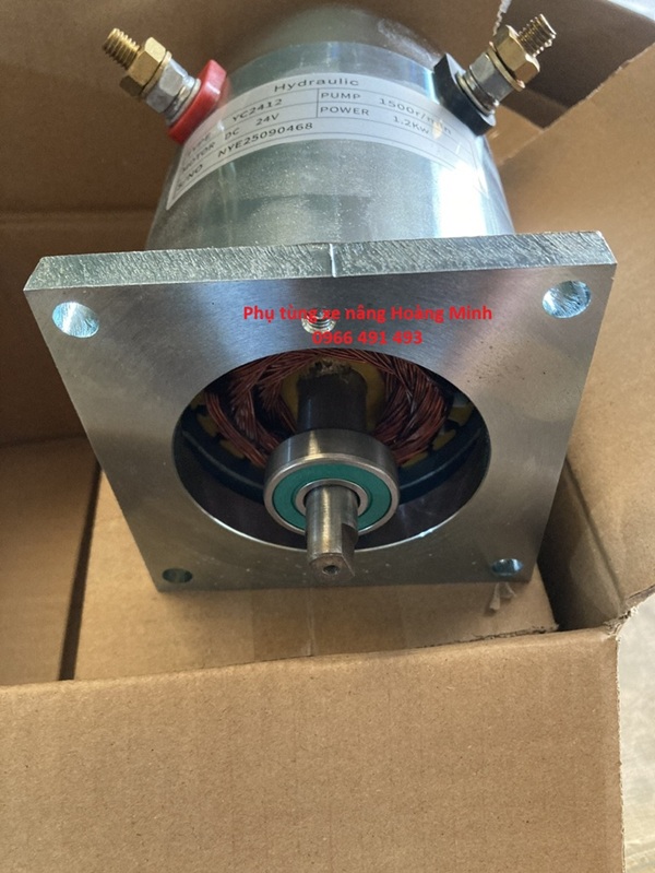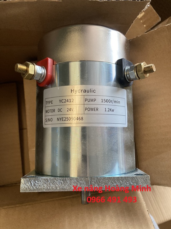 Motor bơm thủy lực YC2412 có kích thước và thông số tương thích hoàn toàn với xe nâng điện Heli, không cần chế cháo khi thay thế.