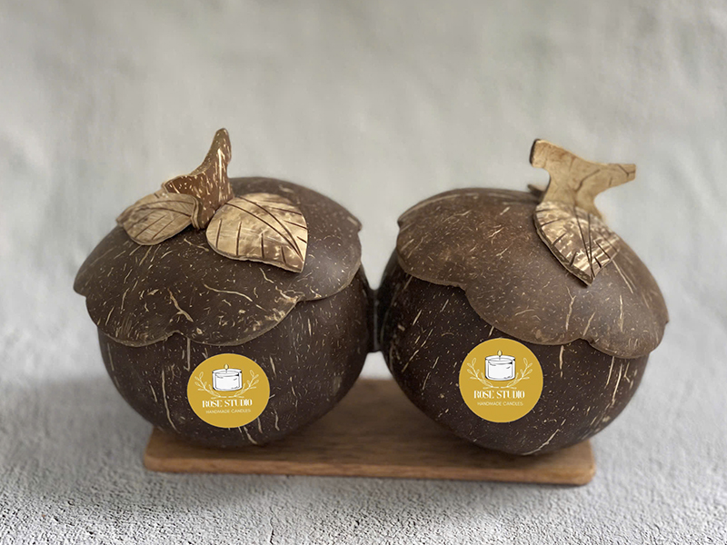 Vỏ Nến: Sử dụng gáo dừa (vỏ dừa) thật được làm sạch và xử lý thủ công. Thiết kế này tạo nên vẻ ngoài mộc mạc, độc đáo và rất thân thiện với môi trường.