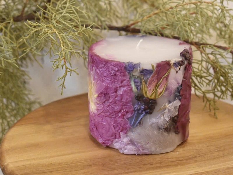 - Trang Trí: Nến thường có màu trắng hoặc tông màu pastel nhẹ nhàng, thường được trang trí thêm hoa khô để tăng tính thẩm mỹ.