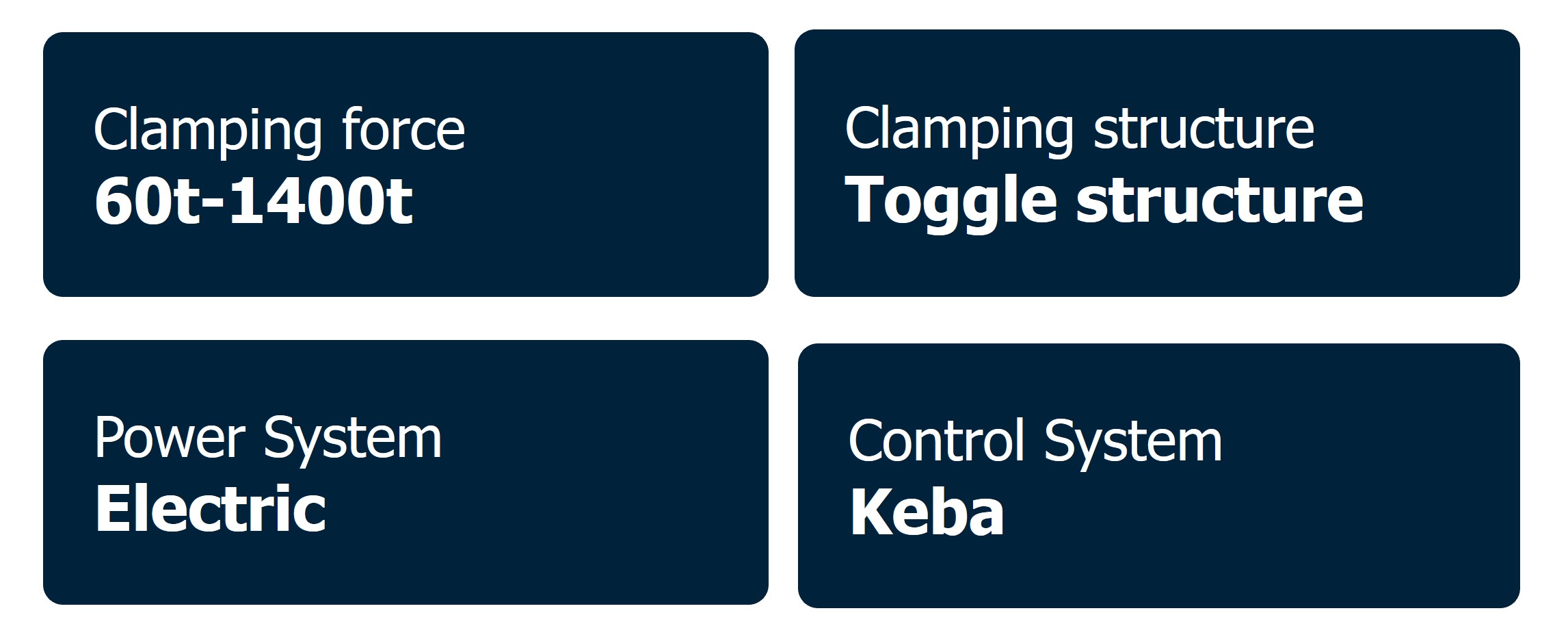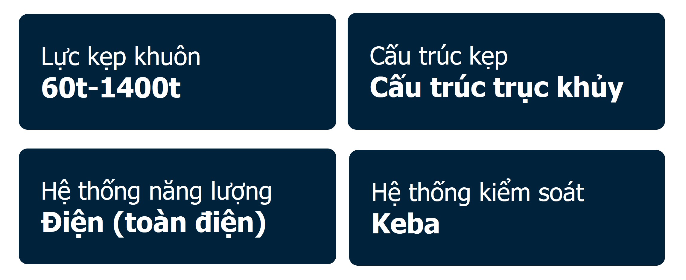 - Công nghệ điện được áp dụng cho các chức năng phun, nạp liệu và đóng/mở khuôn