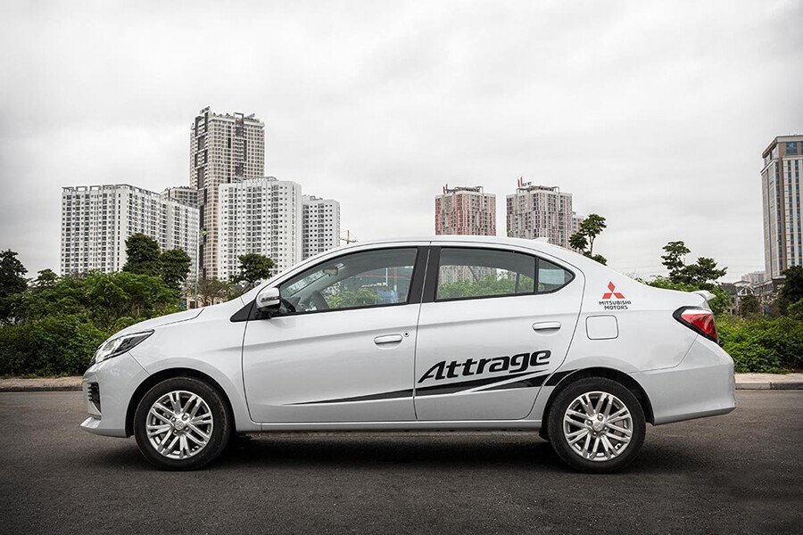 Phần thân xe Attrage 2026 được thiết kế tổng thể hài hòa, giúp xe trông khỏe hơn và rộng rãi hơn