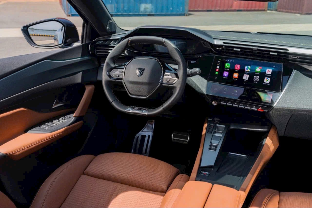 Peugeot 408 có vô-lăng bọc da kèm đường chỉ khâu màu vàng tương phản. Phía sau là đồng hồ tốc độ kỹ thuật số 10 inch hỗ trợ hiển thị 3D. . Vị trí ghế lái cho tầm nhìn thấp gần tương tự những chiếc sedan.