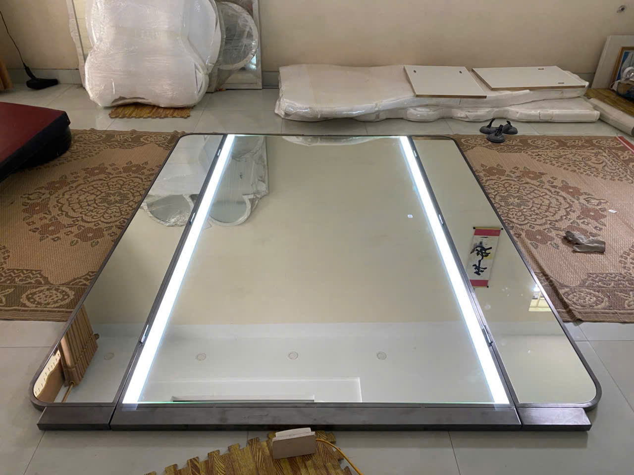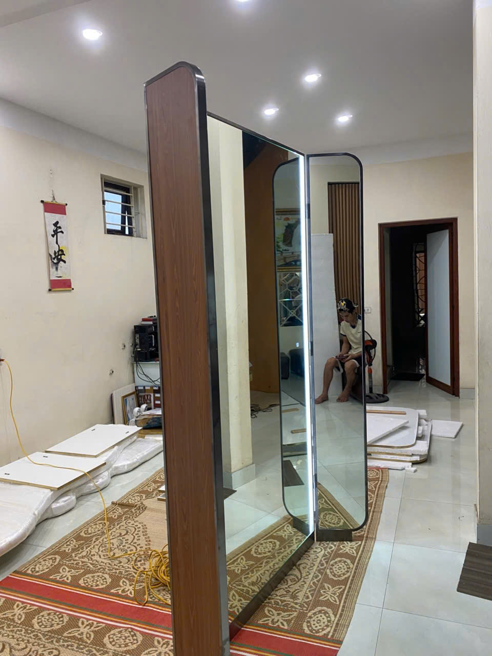 🪞 Ảnh 3: Hình ảnh gương trong quá trình lắp đặt thực tế – hoàn thiện tinh xảo, khớp kỹ thuật từng milimet.