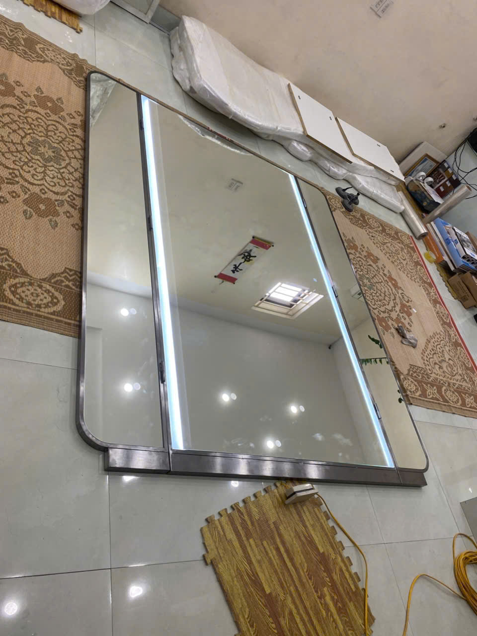 🪞 Ảnh 2: Mẫu gương khổ lớn gắn LED viền đôi – thích hợp cho showroom, spa, studio chụp ảnh.