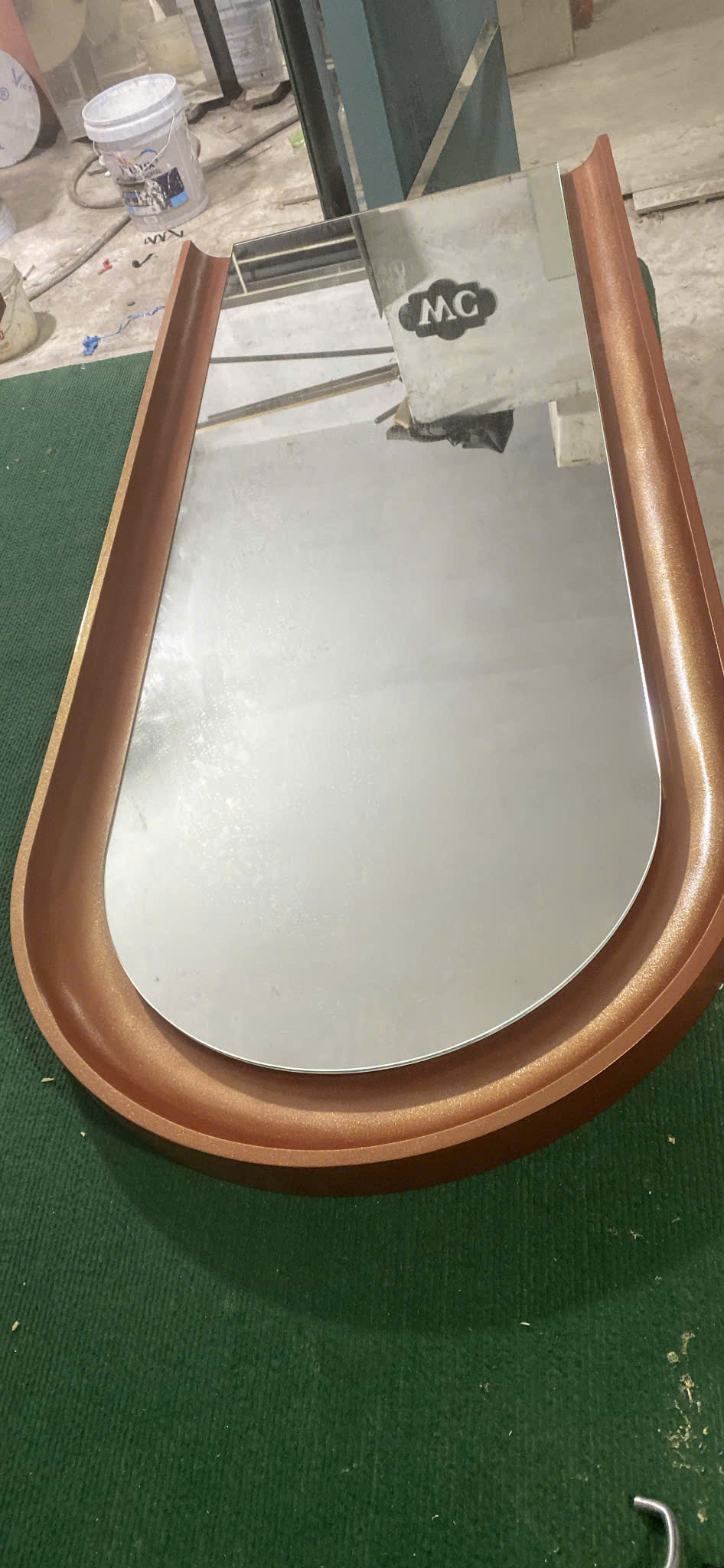 Gia công gương Bỉ – cắt CNC – mài cạnh – lắp khung.