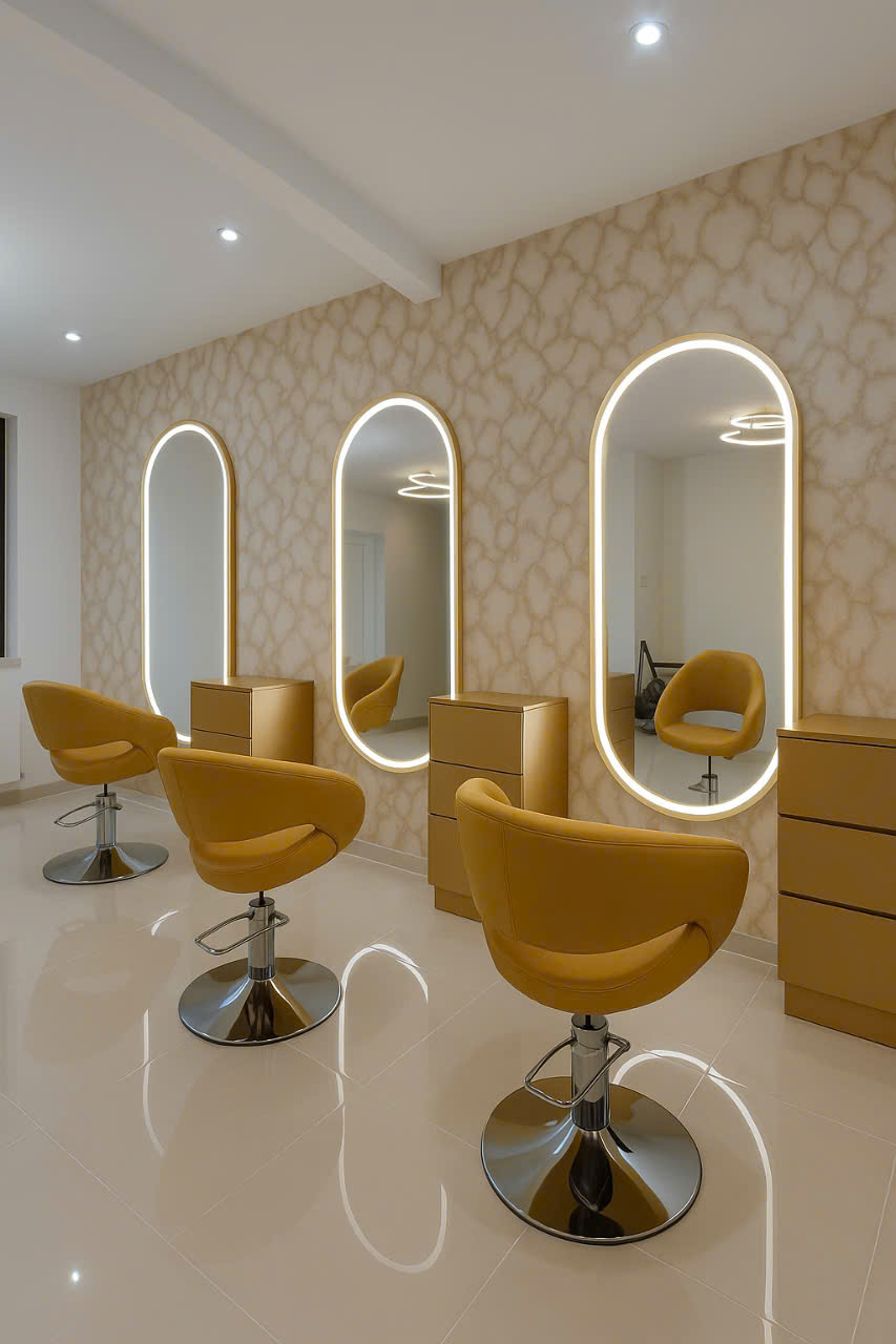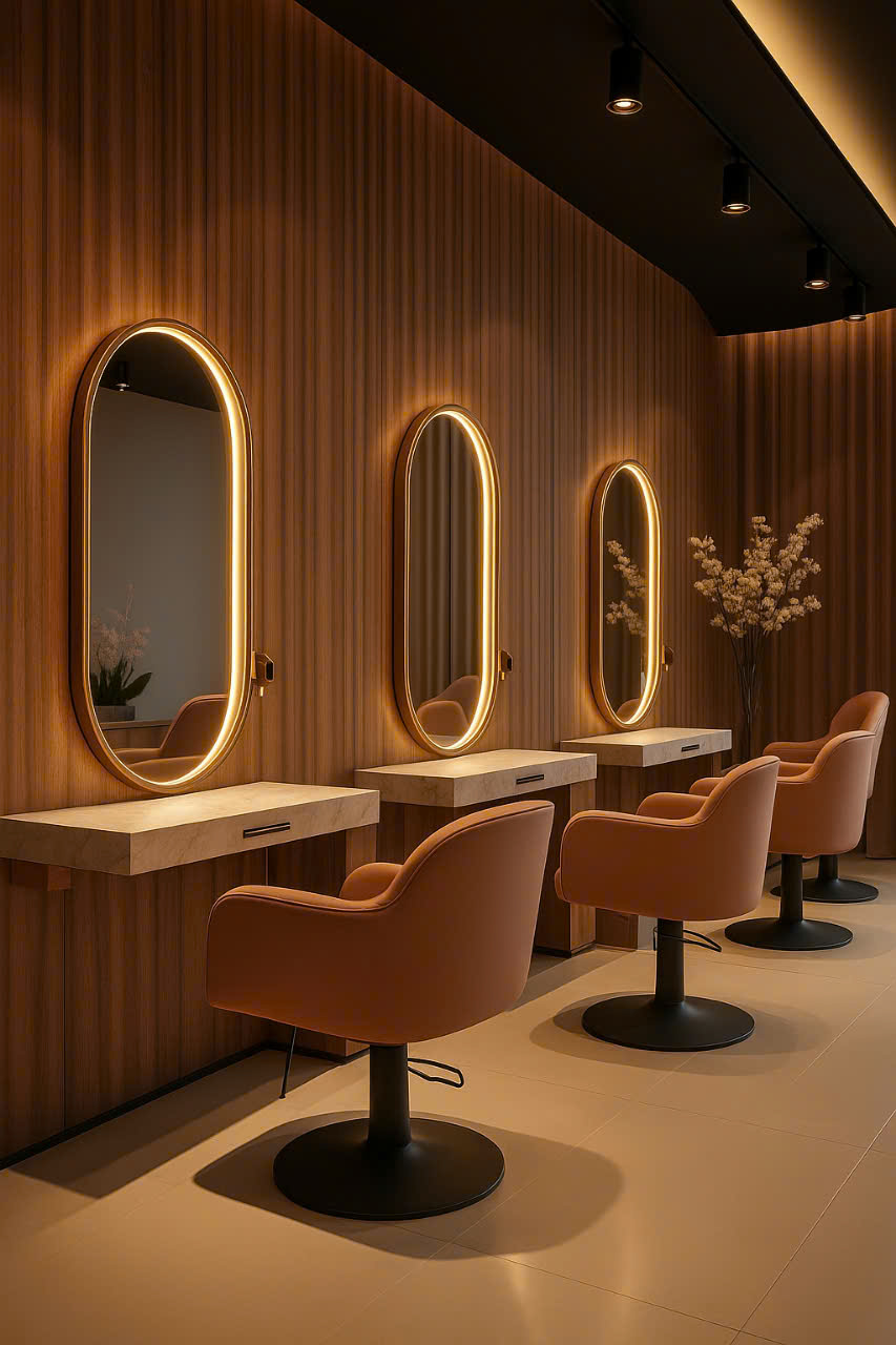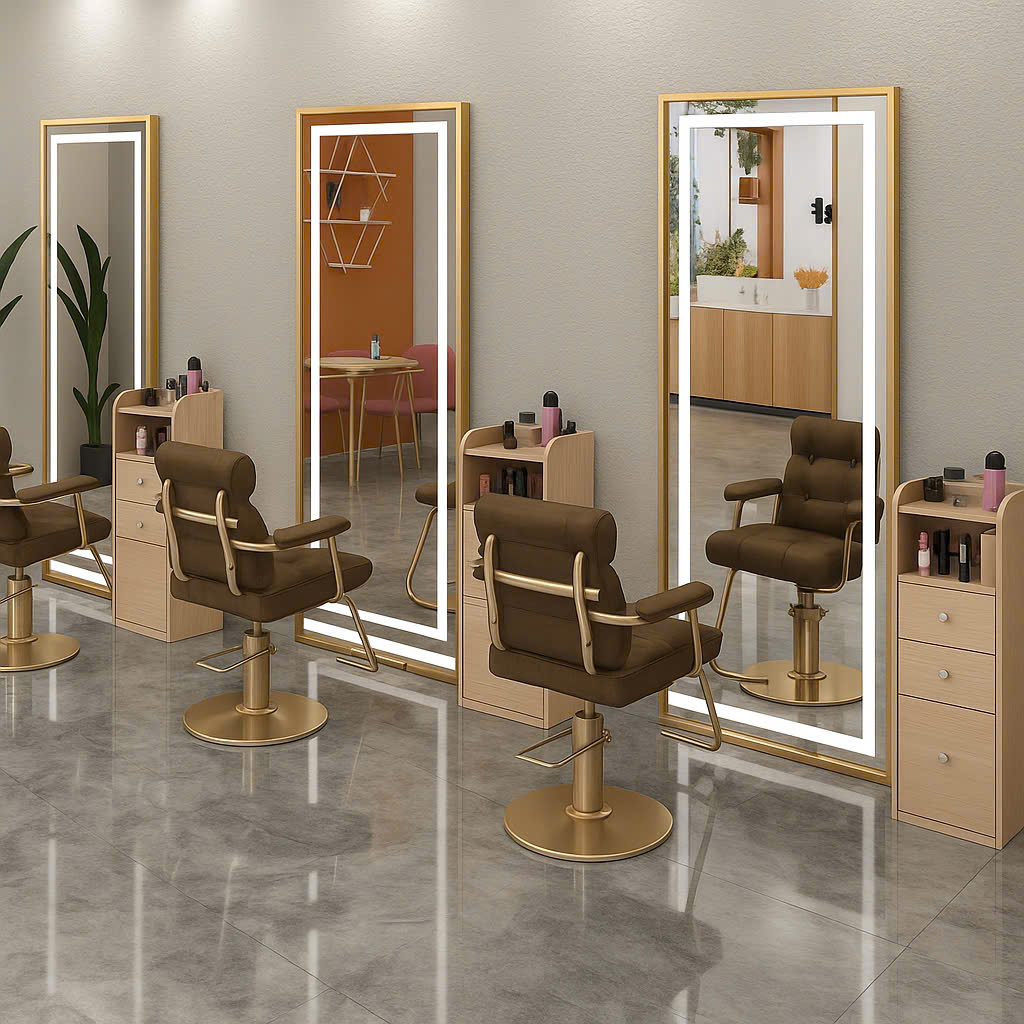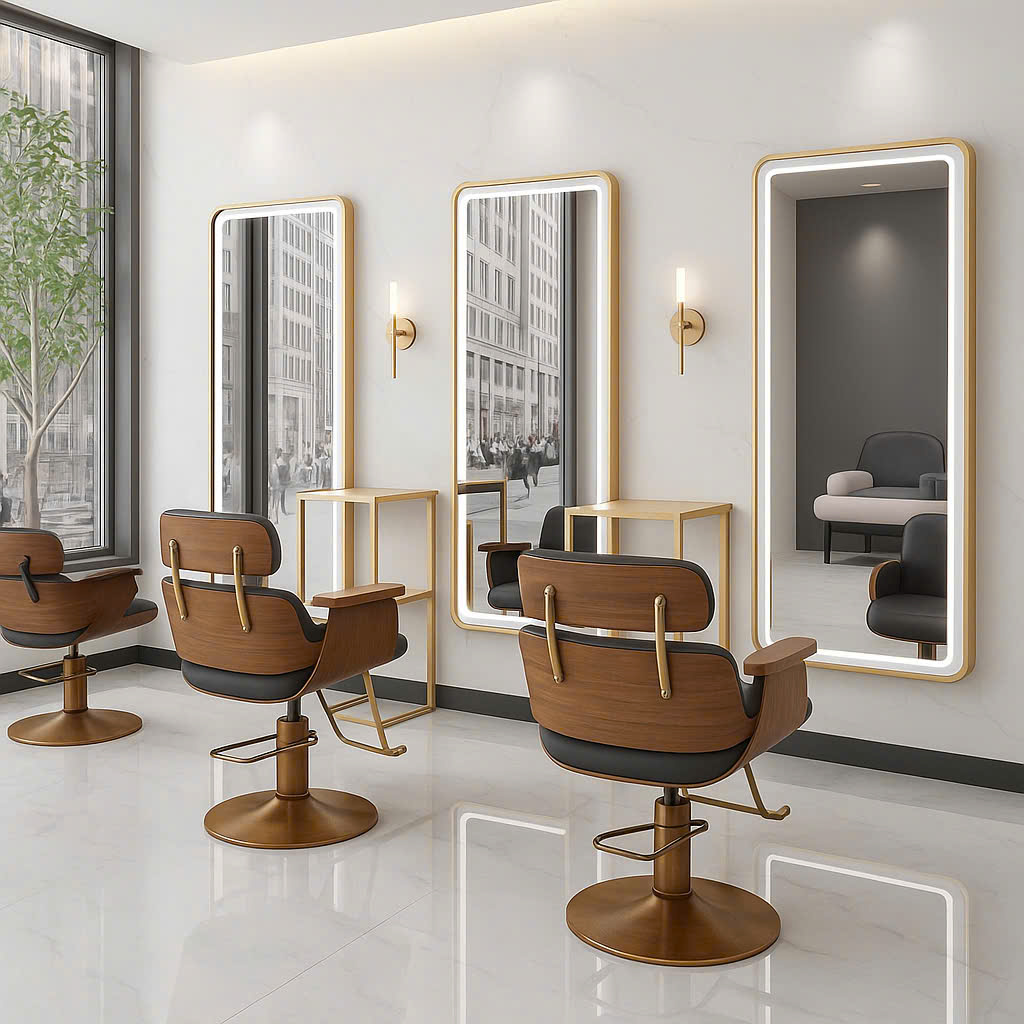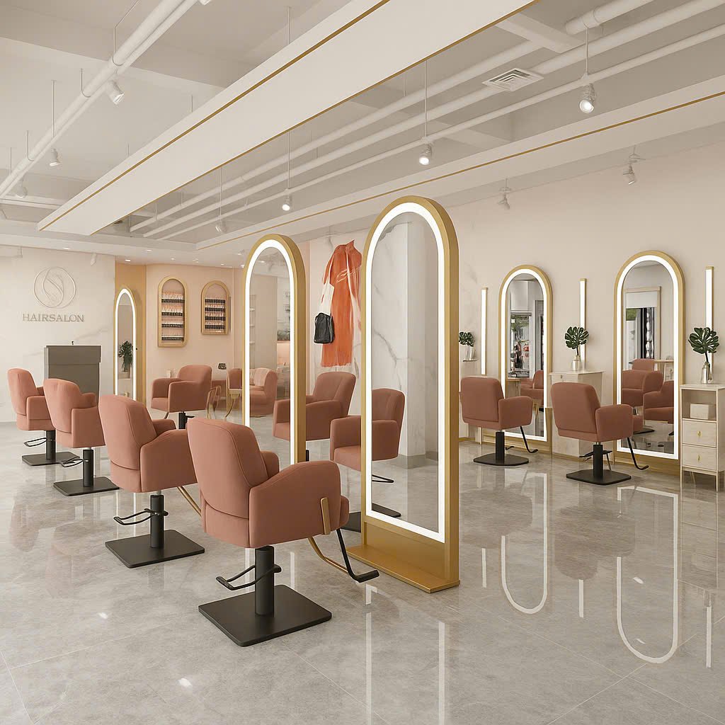 Gương không chỉ giúp khách hàng soi mình, mà còn là “trái tim” của không gian salon – phản chiếu phong cách, cá tính và sự chuyên nghiệp của thương hiệu.