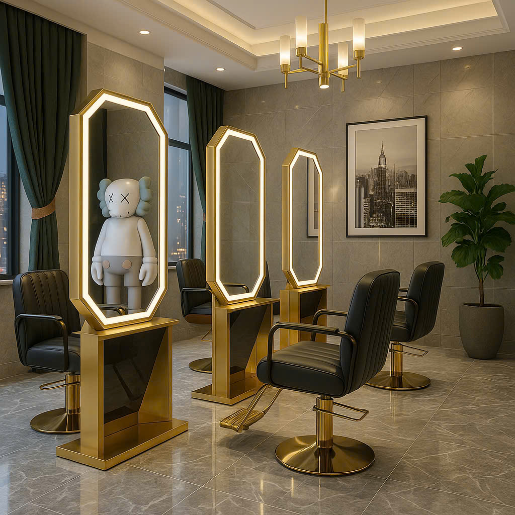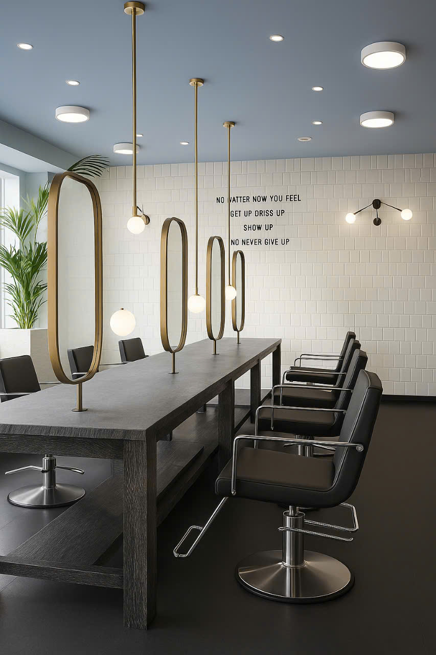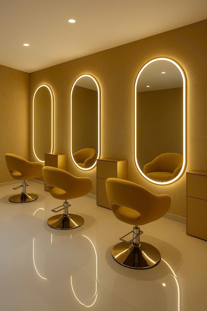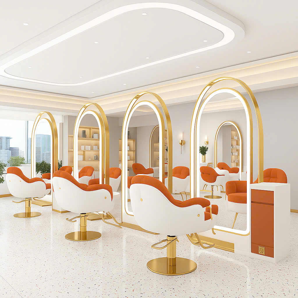 Gương không chỉ giúp khách hàng soi mình, mà còn là “trái tim” của không gian salon – phản chiếu phong cách, cá tính và sự chuyên nghiệp của thương hiệu.