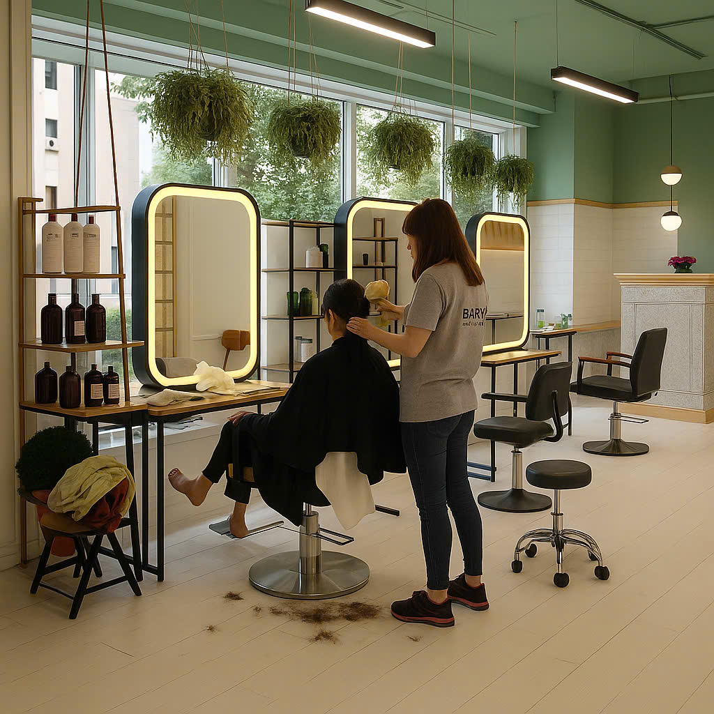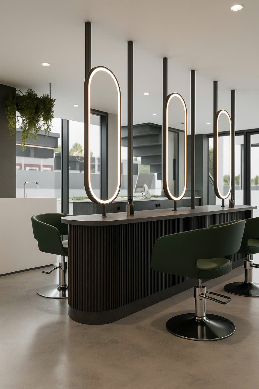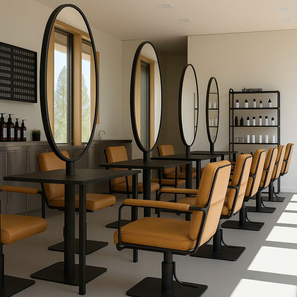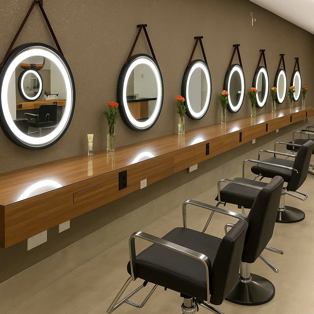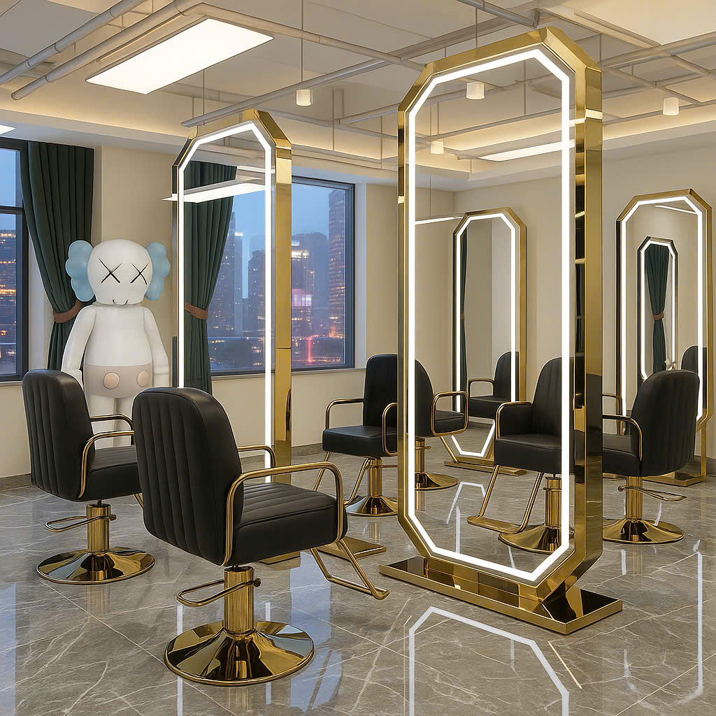 Gương không chỉ giúp khách hàng soi mình, mà còn là “trái tim” của không gian salon – phản chiếu phong cách, cá tính và sự chuyên nghiệp của thương hiệu.