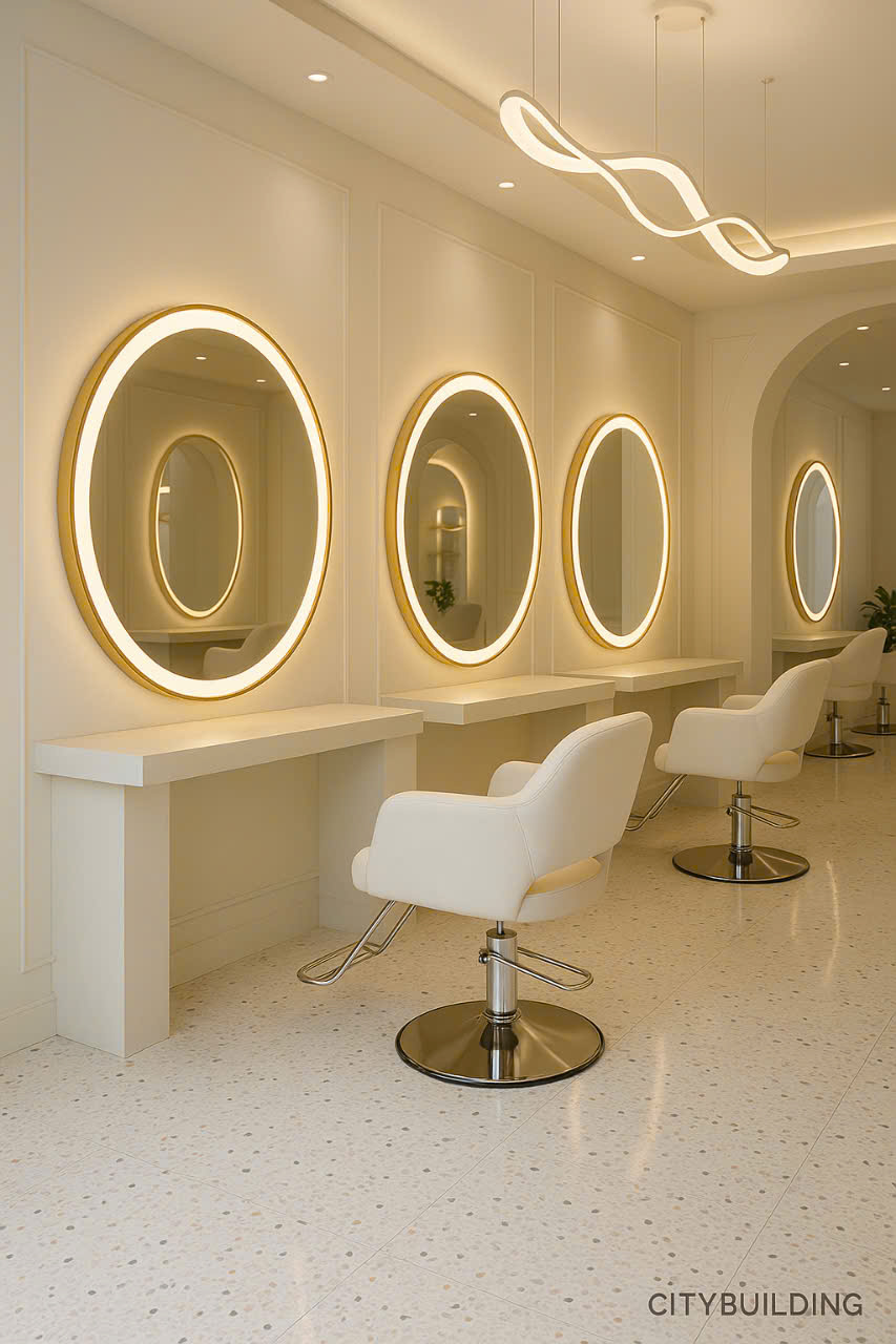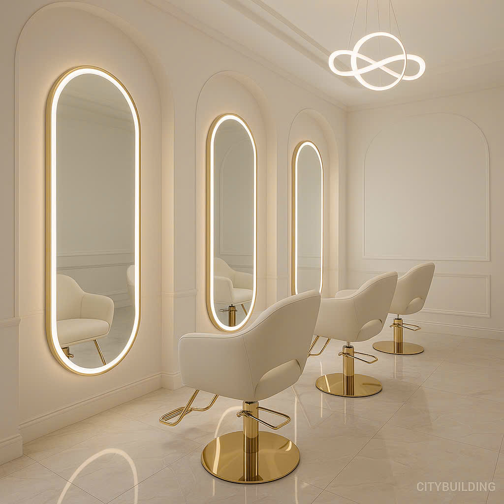 🌈 GƯƠNG TIỆM CẮT TÓC CITYBUILDING – CHUẨN ÁNH SÁNG, CHUẨN THẨM MỸ