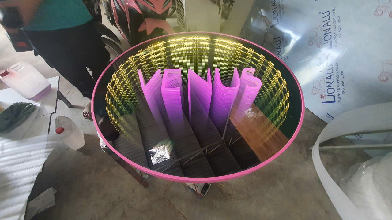 🎨 Mỗi chiếc logo gương vô cực là một tác phẩm nghệ thuật ánh sáng, kết hợp giữa kỹ thuật chính xác & cảm hứng sáng tạo.