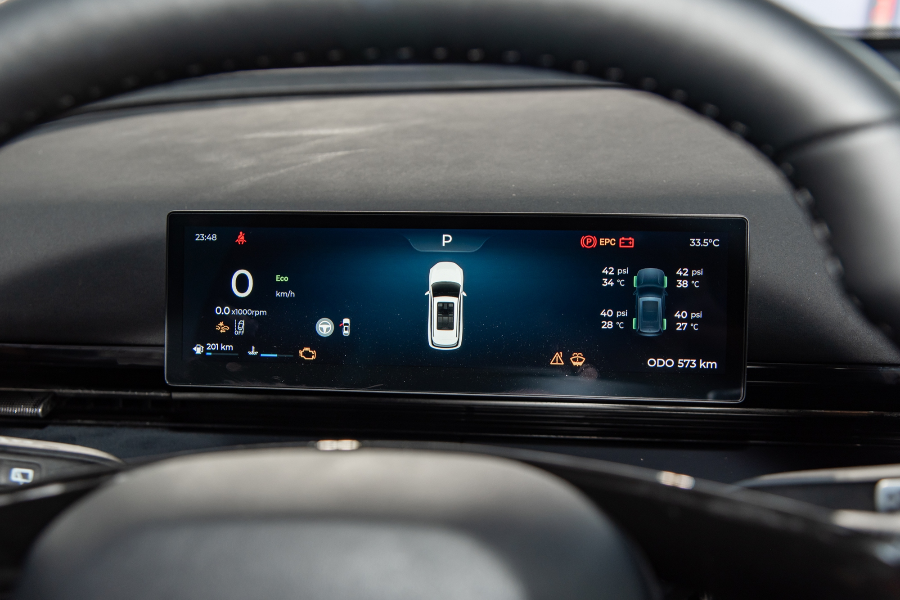 Omoda C7 không có HUD, nhưng bù lại sở hữu nhiều tiện ích khác như đèn viền LED 256 màu, kính 2 lớp cách âm cho hàng ghế trước, hệ thống lọc không khí. Điều hòa hai vùng độc lập đi kèm lọc bụi mịn PM0.3.