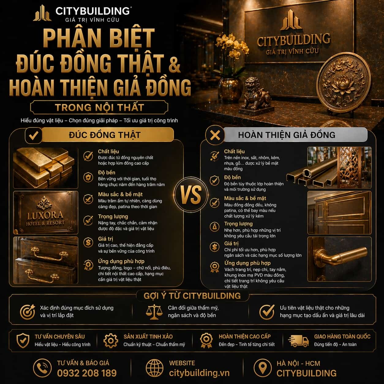 💎 PHÂN BIỆT ĐÚC ĐỒNG THẬT VÀ HOÀN THIỆN GIẢ ĐỒNG TRONG NỘI THẤT CITYBUILDING