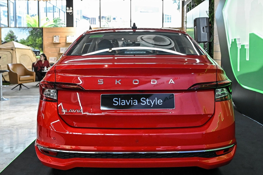 Ngôn ngữ thiết kế đặc trưng với những đường gân dập nổi sắc nét giúp Skoda Slavia Ambition giữ được bản sắc riêng, đồng thời toát lên vẻ chắc chắn và bề thế. Mẫu sedan này sở hữu kích thước hàng đầu phân khúc với chiều dài x rộng x cao lần lượt 4.541 × 1.958 × 1.487 mm, trục cơ sở 2.651 mm và đặc biệt khoảng sáng gầm 179 mm – cao nhất trong nhóm. Xe còn mang đến nhiều lựa chọn màu sắc thời thượng như đỏ, xám, trắng và xanh.