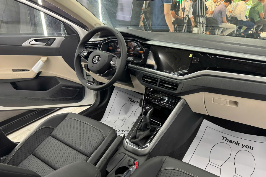 Slavia khéo léo dung hòa giữa truyền thống và hiện đại: giữ lại các chi tiết quen thuộc như cửa gió tròn, phanh tay cơ, nhưng đồng thời bổ sung công nghệ mới như màn hình giải trí cảm ứng 8 inch, đi kèm hệ thống âm thanh 8 loa. Hệ thống điều hòa cảm ứng tích hợp công nghệ AirCare lọc bụi mịn PM2.5, kết hợp sạc không dây 15W và 4 cổng USB-C bố trí trước – sau, đảm bảo tiện lợi tối đa cho người dùng.