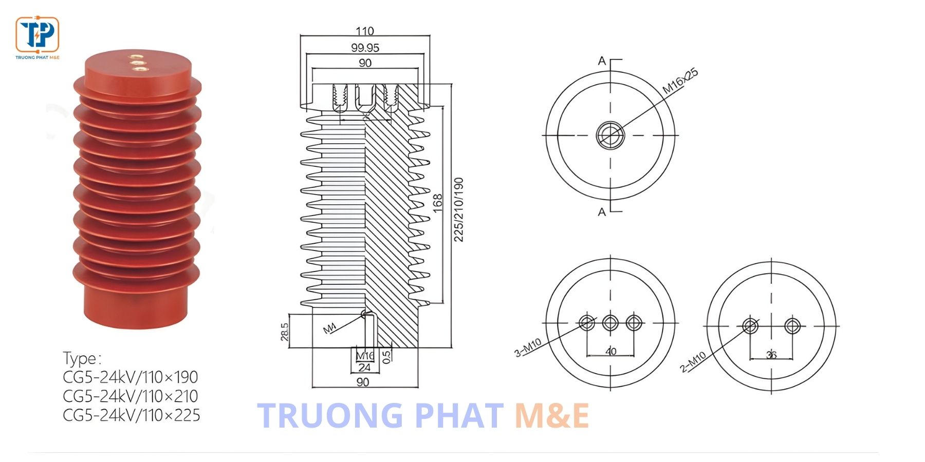 📐 2. Thông số kỹ thuật Sứ đỡ thanh cái trung thế CG5-24Q (24kV)