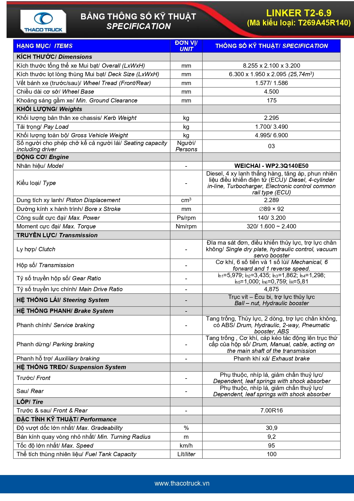 Tổng tải 6.9 tấn – đúng chuẩn tên gọi T2-6.9