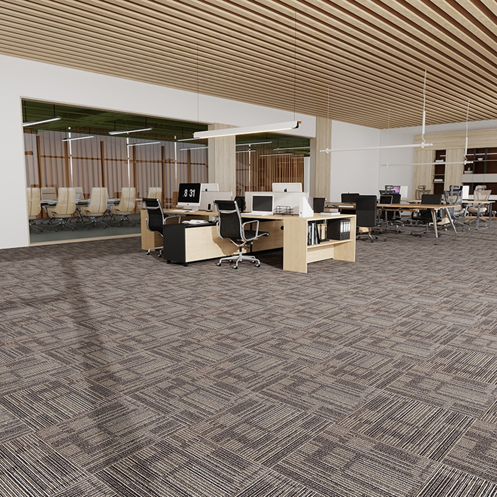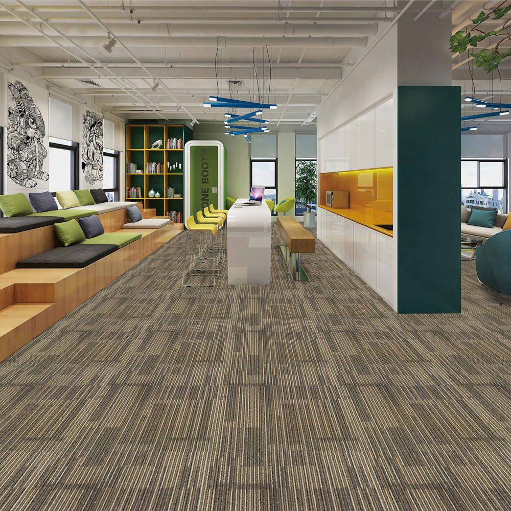 Dòng thảm trải sàn này được thiết kế hiện đại - nâng tầm không gian, ngoài ra dòng Thảm gạch này có phong cách tối giản nhưng sang trọng, phù hợp với nhiều không gian từ văn phòng đến khách sạn cao cấp.