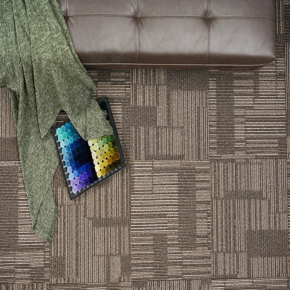 Dòng thảm trải sàn này được thiết kế hiện đại - nâng tầm không gian, ngoài ra dòng Thảm gạch này có phong cách tối giản nhưng sang trọng, phù hợp với nhiều không gian từ văn phòng đến khách sạn cao cấp.