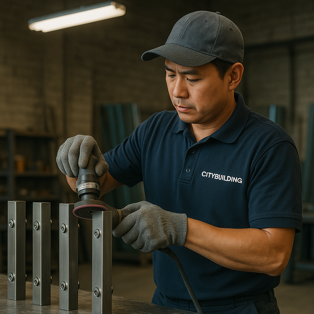 Kính được gia công trực tiếp bằng máy CNC, mài cạnh, khoan lỗ và tôi cường lực tại hệ thống xưởng của Citybuilding.