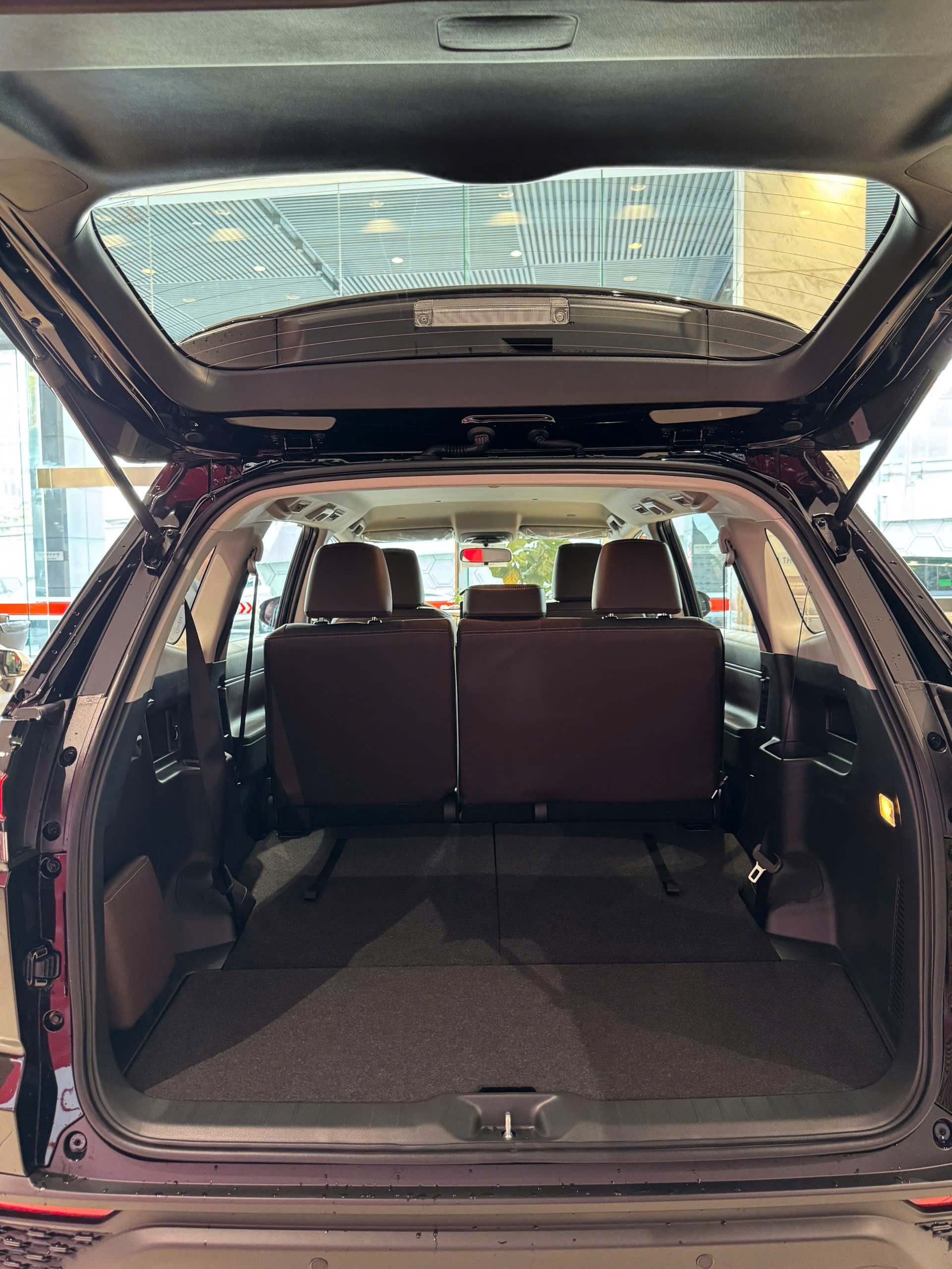 Khoang hành lý của Toyota Innova Cross 2.0G rộng rãi hàng đầu phân khúc, thiết kế linh hoạt và tiện dụng, dễ dàng điều chỉnh không gian theo nhu cầu. Dung tích khoang hành lý đạt đến 991 lít. Khác với thế hệ trước, hàng ghế thứ ba có thể gập phẳng xuống sàn thay vì treo sang hai bên, tối ưu không gian sử dụng và nâng cao tính thuận tiện.