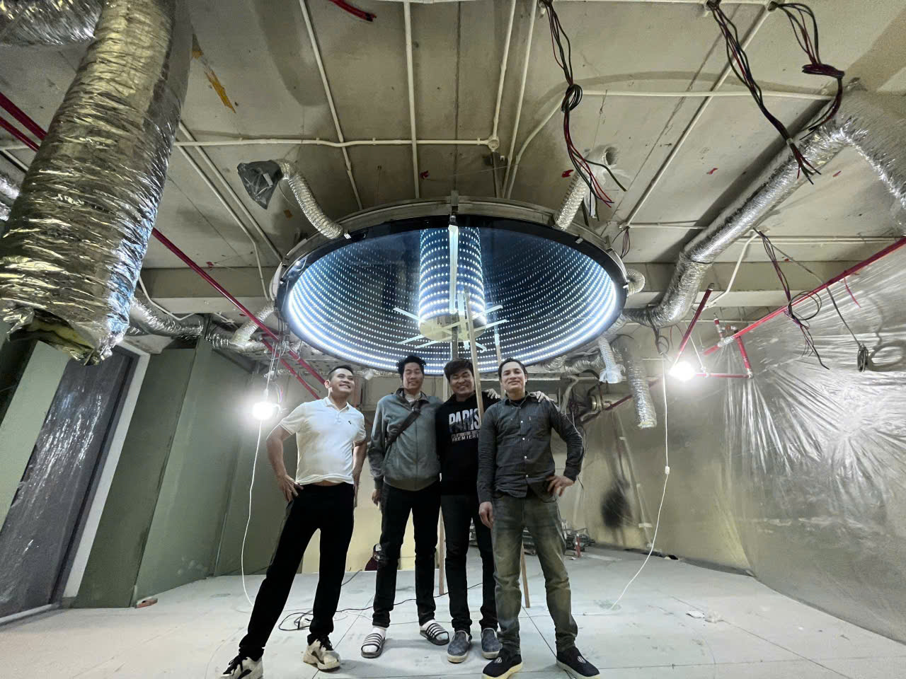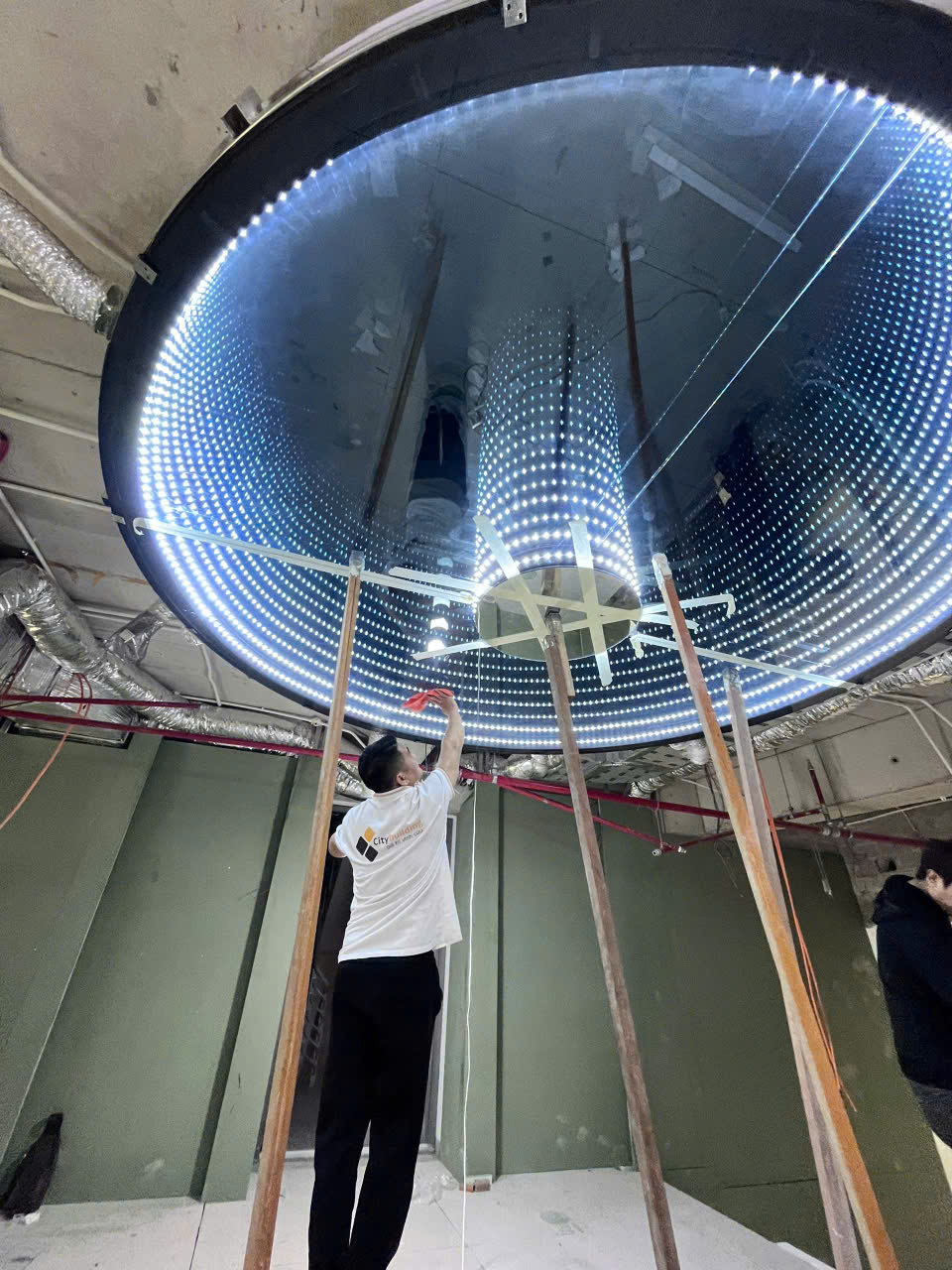 Các hình ảnh trên là công trình trần gương vô cực tròn đang thi công thực tế bởi đội ngũ Citybuilding.