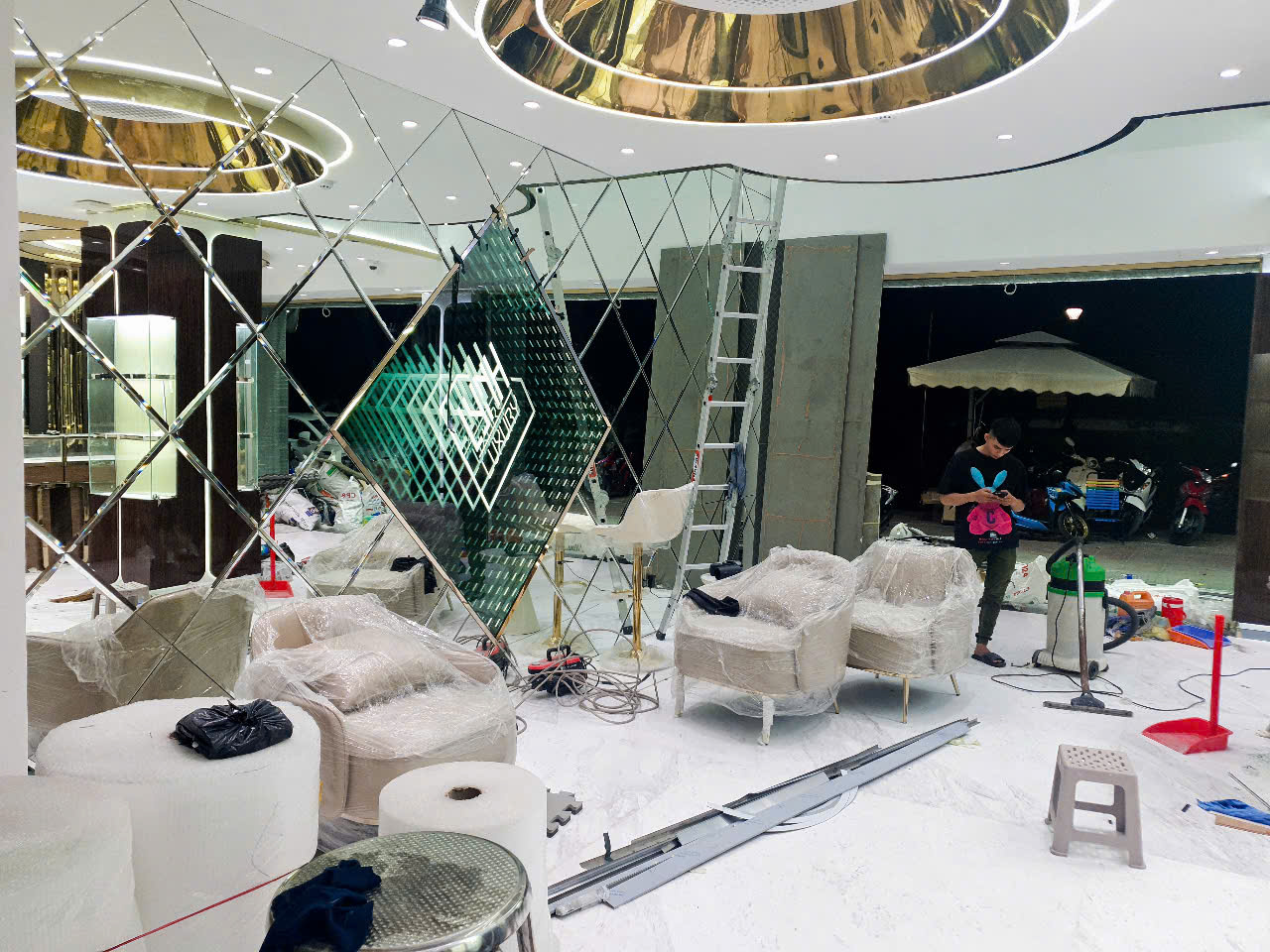 Việc thi công yêu cầu độ chính xác cao và kinh nghiệm xử lý vật liệu gương kính.