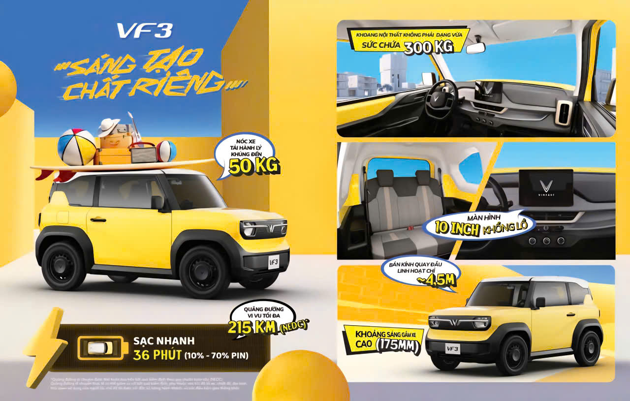 - Xe điện đô thị mini thực dụng: VinFast VF3 2026 phù hợp di chuyển hằng ngày trong thành phố, dễ lái, dễ đỗ xe và tiết kiệm chi phí.