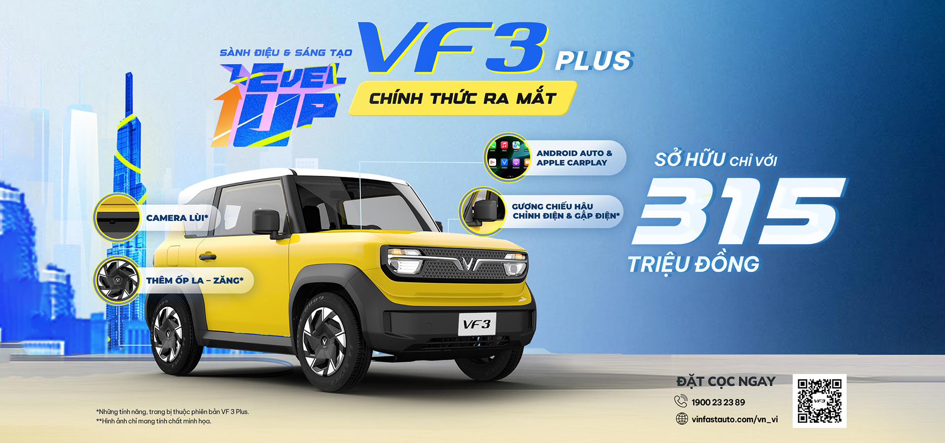 VinFast đã chính thức ra mắt VF 3 Plus - phiên bản cao cấp hơn của mẫu xe đô thị VF 3. Giữ nguyên thông số kỹ thuật, phiên bản này được nâng cấp ở 4 điểm để đem tới trải nghiệm sử dụng và ngoại hình hấp dẫn hơn.