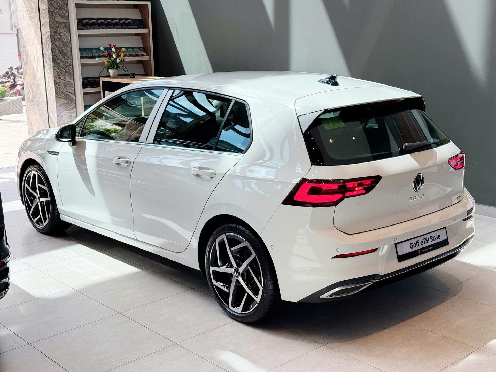 Phía sau, Golf 1.5 eTSI Life mang dáng vẻ thể thao với cụm đèn hậu LED Matrix thiết kế hiện đại. Các họa tiết 3D bên trong đèn tạo hiệu ứng thị giác nổi bật, đi cùng đồ họa chữ L nằm ngang và logo Volkswagen đặt trung tâm, mang lại sự cân đối và tinh tế.