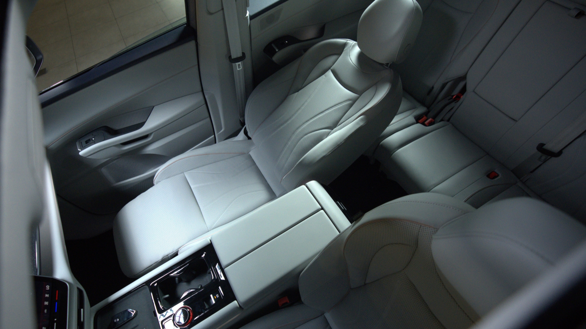 Ghế lái bọc da cao cấp, chỉnh điện 14 hướng, mang lại sự thoải mái tối đa. Hàng ghế thứ hai rộng rãi, hỗ trợ lắp cùng lúc ba ghế trẻ em chuẩn ISOFIX. Cơ chế trượt và gập linh hoạt giúp việc tiếp cận hàng ghế thứ ba trở nên thuận tiện hơn.