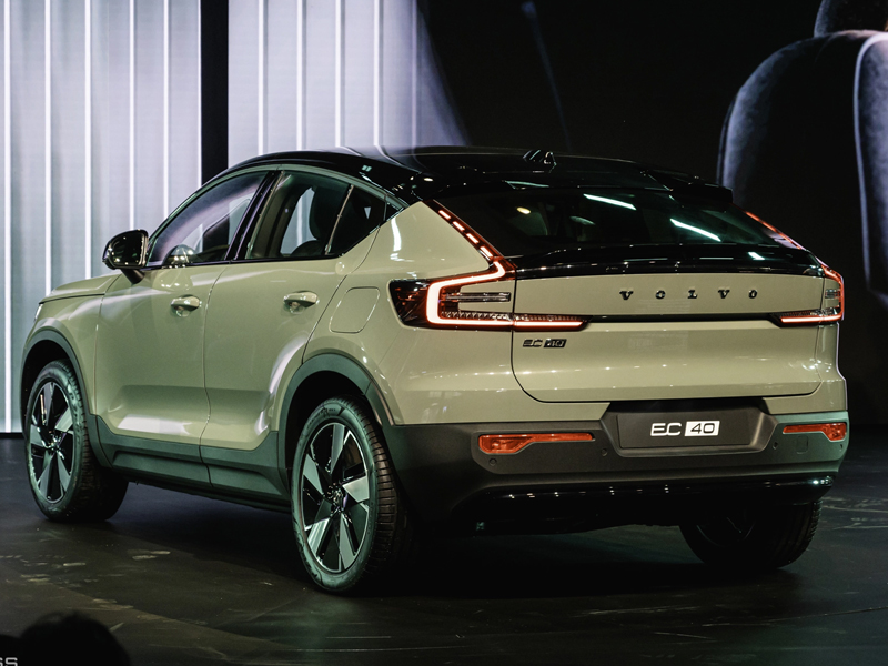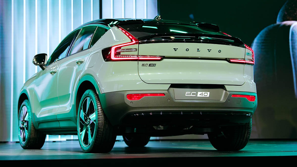 Phần đuôi xe Volvo EC40 vuốt dốc theo phong cách coupe, tạo dáng vẻ năng động và hiện đại. Cụm đèn hậu LED thiết kế liền mạch kéo dài từ trần xe xuống cửa cốp, mang lại nhận diện đặc trưng. Volvo còn trang bị hai cánh gió phía sau một trên nóc và một ở đuôi nhằm cải thiện tính khí động học, góp phần giúp xe tăng phạm vi hoạt động khoảng 4% khi vận hành ở tốc độ cao.