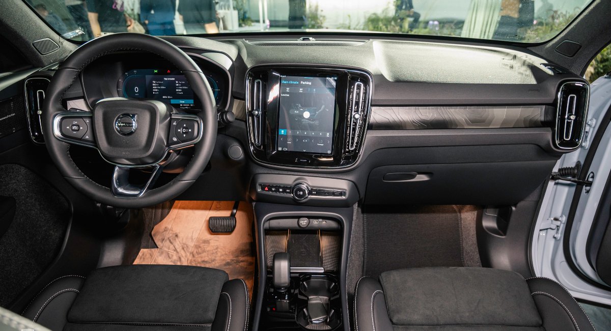 Khoang nội thất của Volvo EC40 được phát triển theo định hướng bền vững, ưu tiên các vật liệu thân thiện với môi trường như da Microtech, đồng thời vẫn giữ được sự tinh giản và sang trọng đặc trưng. Khách hàng cũng có thể lựa chọn chất liệu da Fine Nappa cao cấp với tính năng đục lỗ thông gió, đi kèm chi tiết trang trí Topography độc đáo trên táp-lô phía ghế phụ.