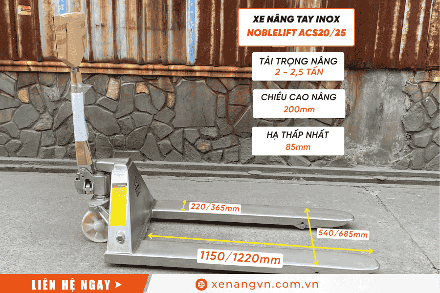 Với tải trọng mạnh mẽ, thiết kế bền bỉ từ inox 304, xe nâng tay inox Noblelift ACS20/25 là giải pháp lý tưởng cho việc vận chuyển hàng hóa trong môi trường đặc biệt. Model này không chỉ tiết kiệm chi phí mà còn nâng cao hiệu suất làm việc, giúp doanh nghiệp vượt qua thách thức từ điều kiện khắc nghiệt. Nếu bạn cần tư vấn thêm về giá xe nâng tay inox hoặc các model tương tự, hãy liên hệ ngay với công ty TNHH Noblelift Việt Nam