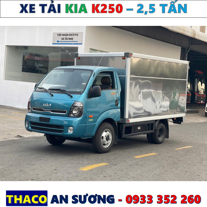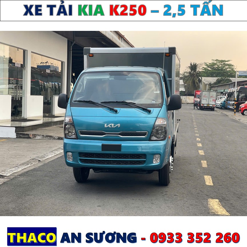 Giá xe tải kia k250 thùng kín mới 2026 đang chào bán: 470.000.000 Vnđ đã bao gồm 8%VAT chưa bao gồm chi phí lăn bánh và các chương trình khuyến mãi tại khu vực Thanh phố Hồ Chí Minh. Để nhận báo giá chính xác theo từng thời điểm mới nhận vui lòng Liên hệ Hotline : 0933.352.260 - Mr. Tuấn để được tư vấn. Thaco An Sương - Mr Tuấn là một trong những địa điểm kinh doanh cực kỳ tiện lợi cho quý khách hàng ghé thăm và bảo dưỡng kỹ thuật trong quá trình sử dụng.