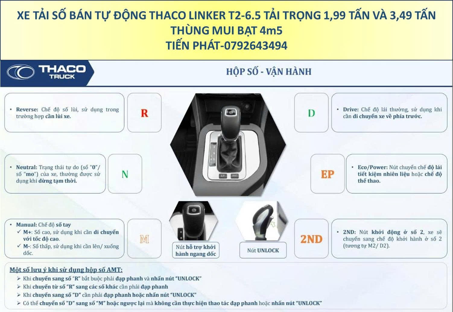 3. Nội thất Thaco Linker T2-6.5 Số Bán Tự động Thùng Mui Bạt Tải 2 Tấn và 3,5 Tấn