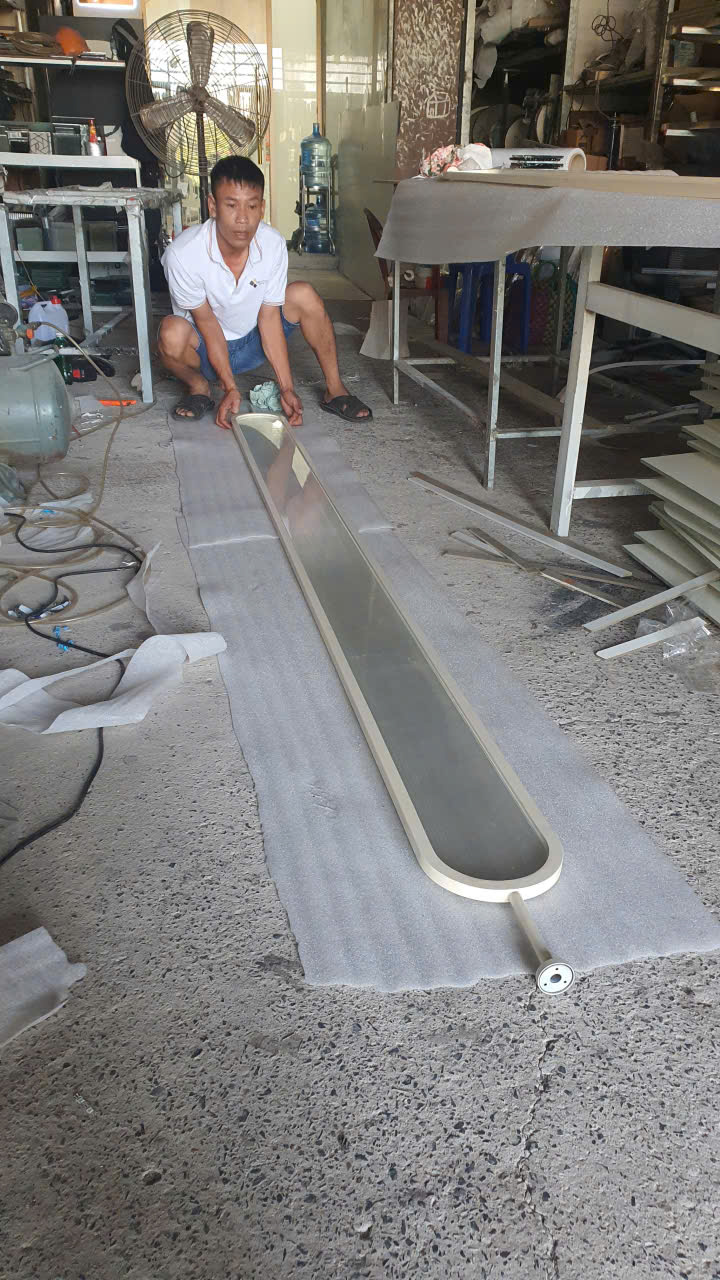 1️⃣ Cắt – uốn khung inox theo kích thước thực tế công trình