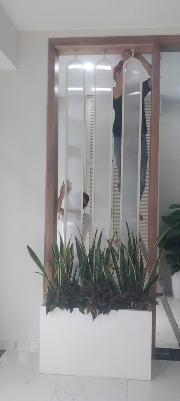🧤 Citybuilding – Xưởng gia công, sản xuất và thi công vách ngăn phòng khách theo yêu cầu tại Hà Nội & TP.HCM. Khung inox sơn màu, kính sọc nhuyễn siêu trong, hoàn thiện sang trọng và tinh tế.
